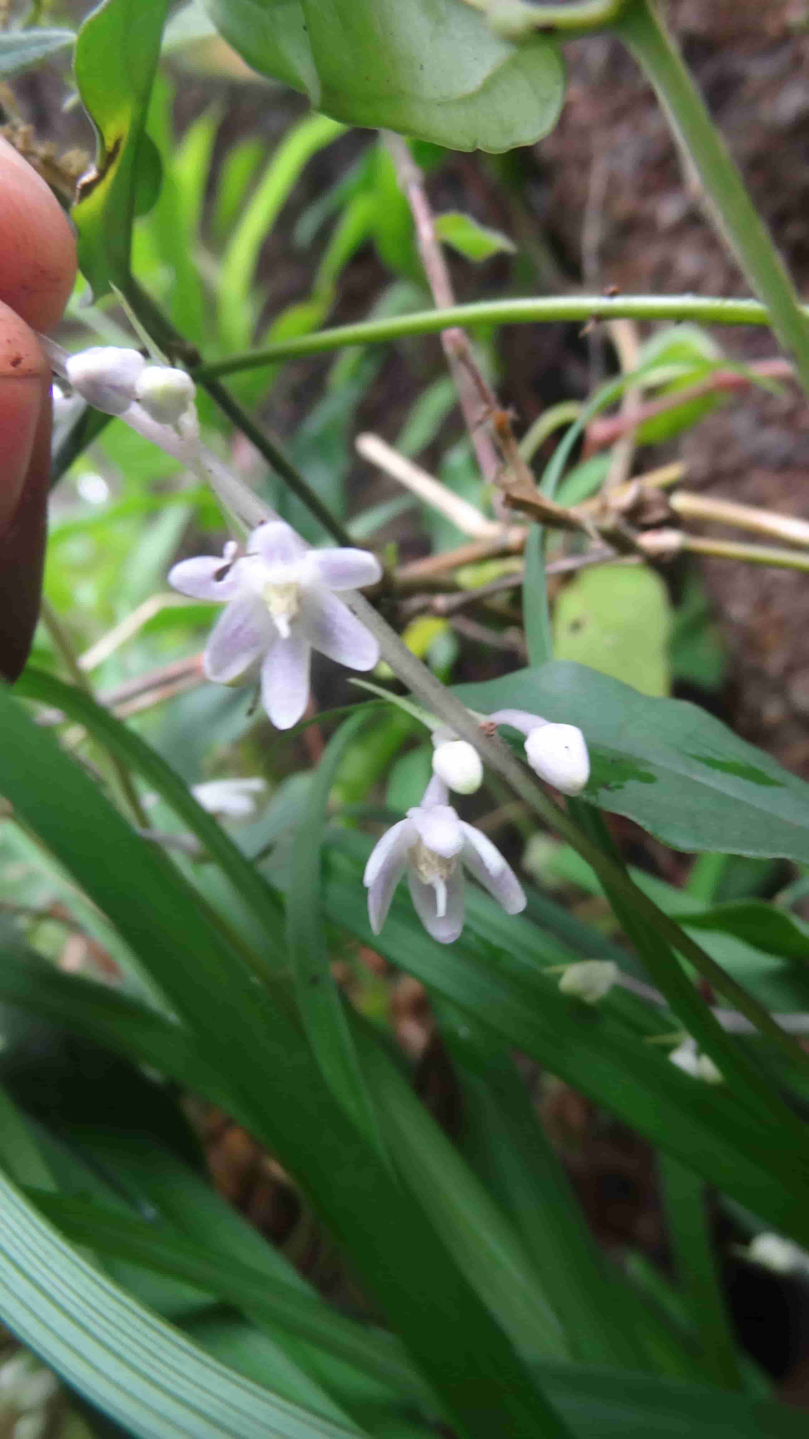 - Cụm hoa dạng chùm, mọc ở nách lá, cao gần bằng lá. Lá bắc nhỏ, cuống hoa dài hơn lá bắc. Hoa nhỏ màu trắng hoặc màu tím nhạt. Bao hoa có 6 mảnh, dính với nhau ở gốc, xếp 2 vòng, không bằng nhau.