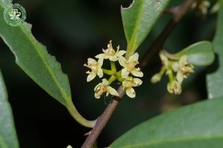 - Hoa: Hoa 4 cánh, dài khoảng 2 mm. Đài hoa dính nhau ở gốc đến 1/2 hoặc 1/3, lá đài hình trứng hoặc hình tam giác, nhọn, không lông, thường có tuyến điểm. Cánh hoa màu trắng hoặc hơi vàng, tách rời, khi nở xòe mạnh, hình trứng hoặc hình chữ nhật, đầu tròn hoặc tù, có lông ở mép, mặt ngoài không lông, mặt trong có nhiều gai thịt, có tuyến điểm. Nhị đực ở hoa cái thoái hóa, dài bằng 2/3 cánh hoa, ở hoa đực vượt ra ngoài cánh hoa nhiều, gốc dính với cánh hoa. Chỉ nhị thẳng. Bao phấn hình trứng hoặc hình thận, có tuyến điểm ở mặt sau. Nhụy cái ở hoa đực thoái hóa hoặc gần như không có, ở hoa cái dài hơn cánh hoa một chút, bầu nhụy hình chai, không lông. Vòi nhụy mảnh, đầu nhụy dẹt hoặc gần như hình khiên.