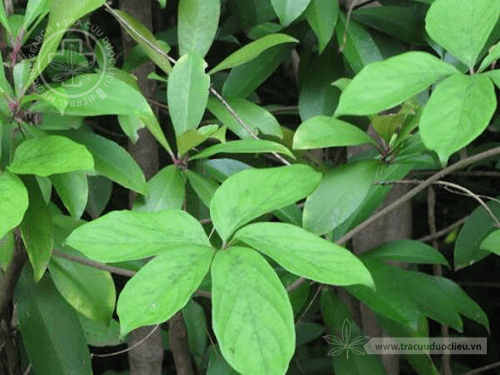 - Lá mọc so le, 3 – 5 lá chét xếp thành hình chân vịt, có cuống dài, lá chét giữa hình bầu dục, dài 15 cm, rộng 4 – 5 cm, lá chét bện chỉ dài bằng nửa hoặc ba phần tử của lá giữa, mặt trên nhẵn hoặc có ít lông, mặt dưới nhiều lông hơn, mép nguyên.