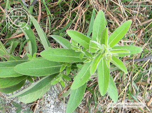 - Lá mọc so le, không cuống, hình mác, dài 2 – 8 cm, rộng 0,5 – 2 cm, gốc thuôn, đầu từ hoặc nhọn, mép khía răng, hai mặt có lông mịn áp sát và tuyến tiết.