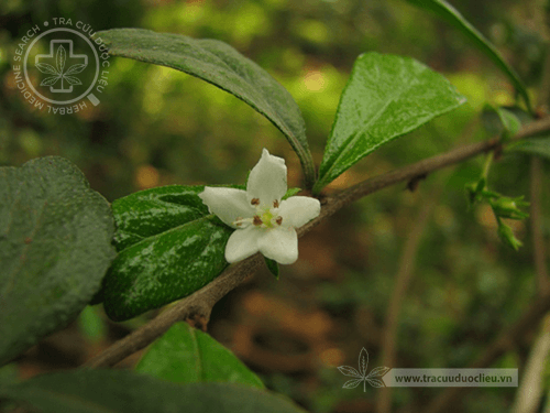 - Cụm hoa mọc thành ngù dài 2 – 3 cm, hoa nhỏ, màu trắng, có cuống ngắn, đài 5 răng có ống dài 1 mm, tràng hình chuông, 5 cánh, có ống dài 1,5 mm; nhị 5, chỉ nhị dài bằng bao phấn, đính ở gốc của ống tràng, bầu hình cầu – nón, 4 – 5 ô.